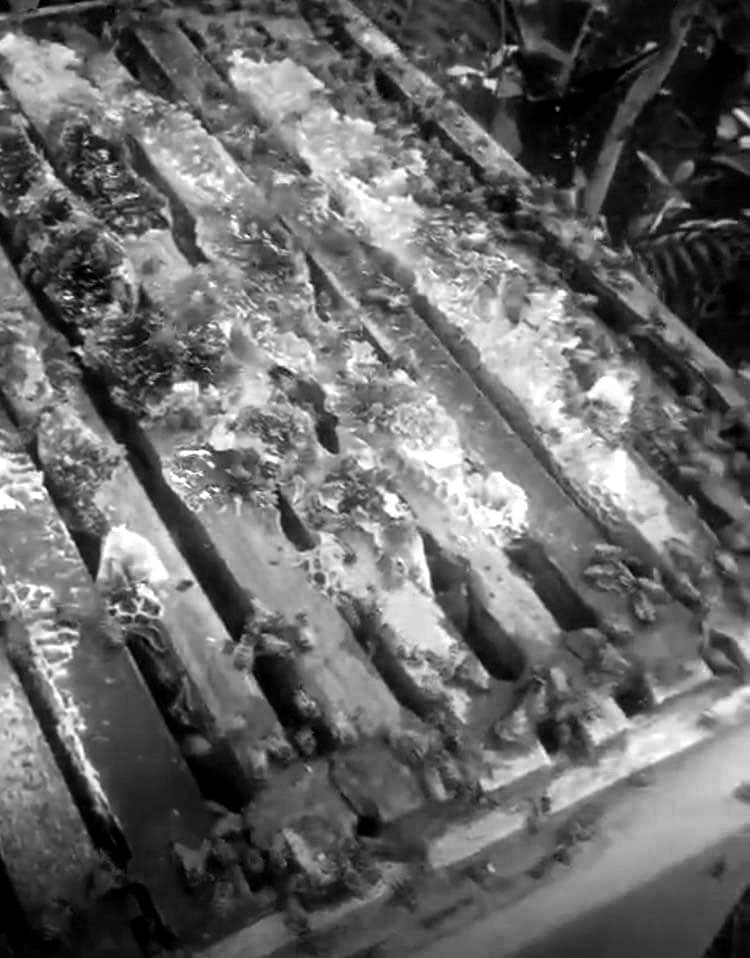 Na prática, a colmeia funciona como um indicador ambiental sensível. Onde há abundância de flores e menor presença de químicos, o ciclo tende a se organizar: as abelhas encontram alimento, mantêm seu vigor e produzem melhor. Em áreas degradadas, a resposta vem rápido. A escassez de vegetação, o empobrecimento da paisagem e a contaminação por pesticidas afetam o comportamento das abelhas e enfraquecem as colmeias. Por isso, na experiência da Romel, plantar e cuidar da vegetação deixou de ser um gesto periférico. Tornou-se parte da própria lógica de recuperação ambiental.